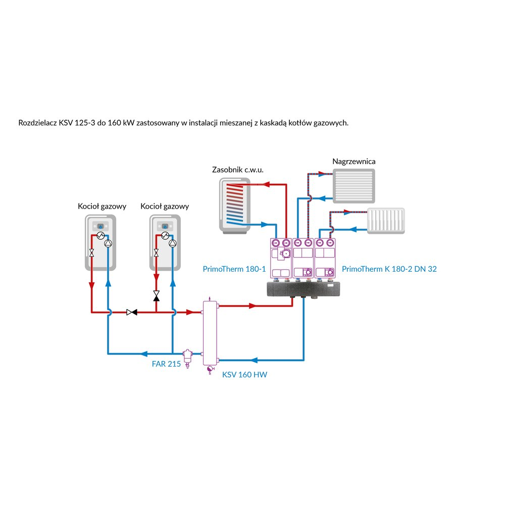 Przeznaczony do szybkiego i wygodnego podłączenia trzech grup pompowych PrimoTherm do źródła ciepła.