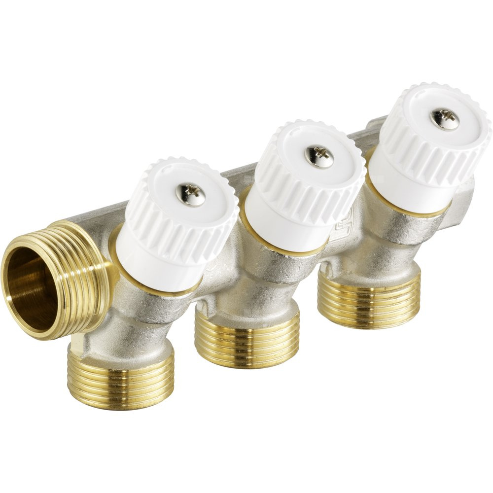Rozdzielacz hydrauliczny VIEGA 6734 mosiądz GZ x GW, odgałęzień: 2 Gwint zewnętrzny (3/4'') + zawory odcinające