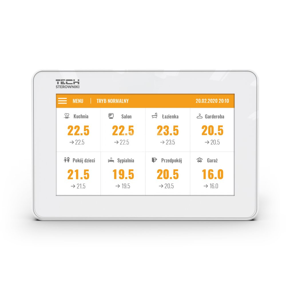 Zasada działania: Sterownik odpowiada za kontrolę i podgląd parametrów całego zestawu do sterowania ogrzewaniem podłogowym.