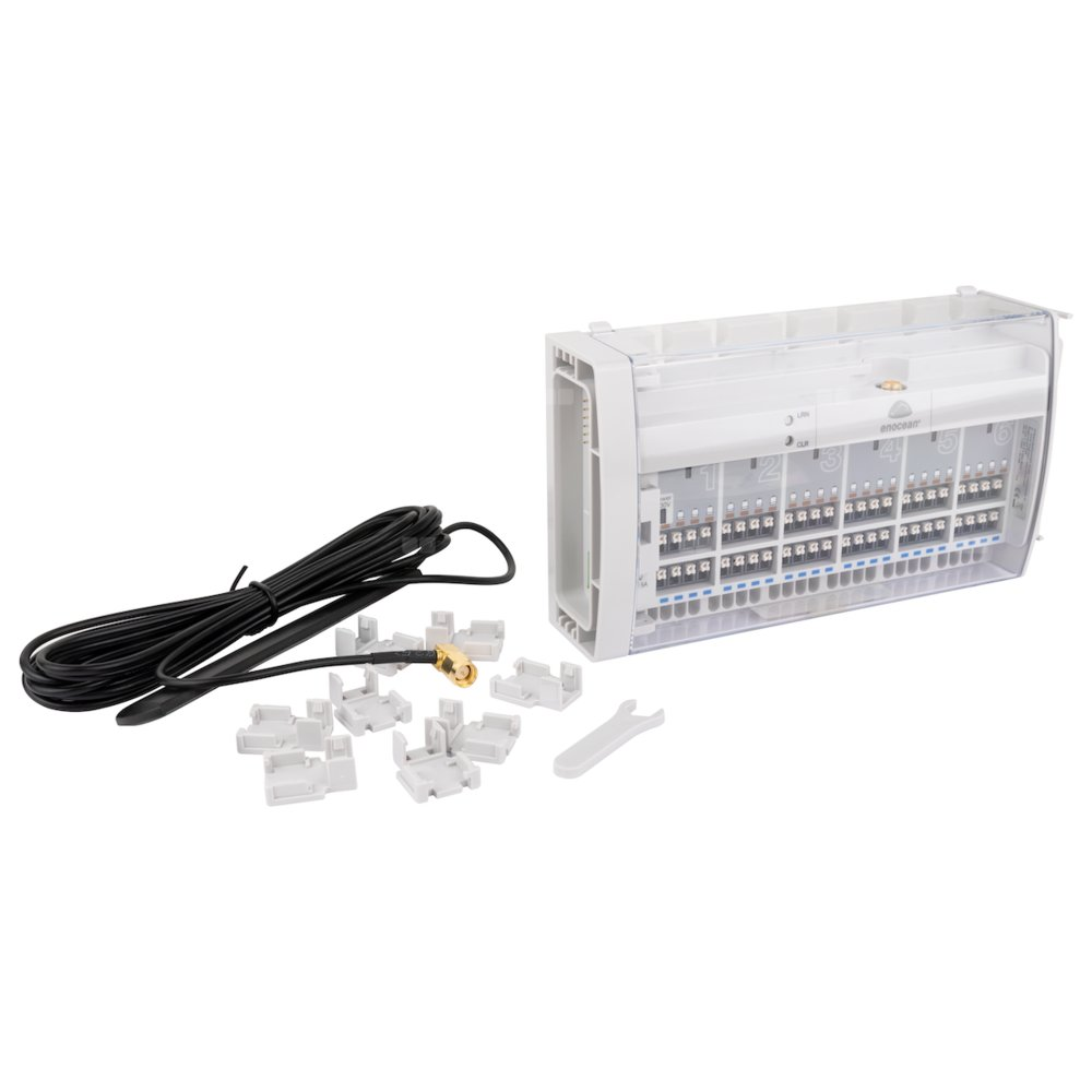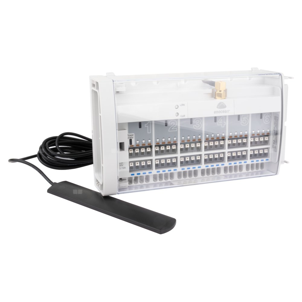 Antena zewnętrzna wyprowadza odbiornik sygnału EnOcean poza szafkę rozdzielacza, poprawiając zasięg.
