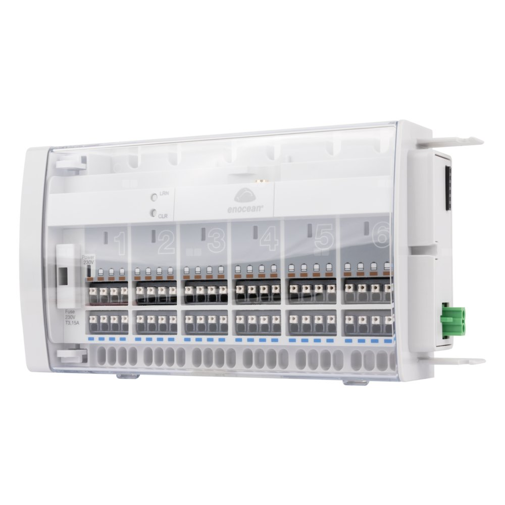 Pozwala sparować do 6 termostatów bezprzewodowych R FT / R FTF i podłączyć do 24 siłowników termoelektrycznych (np. TSA 01).