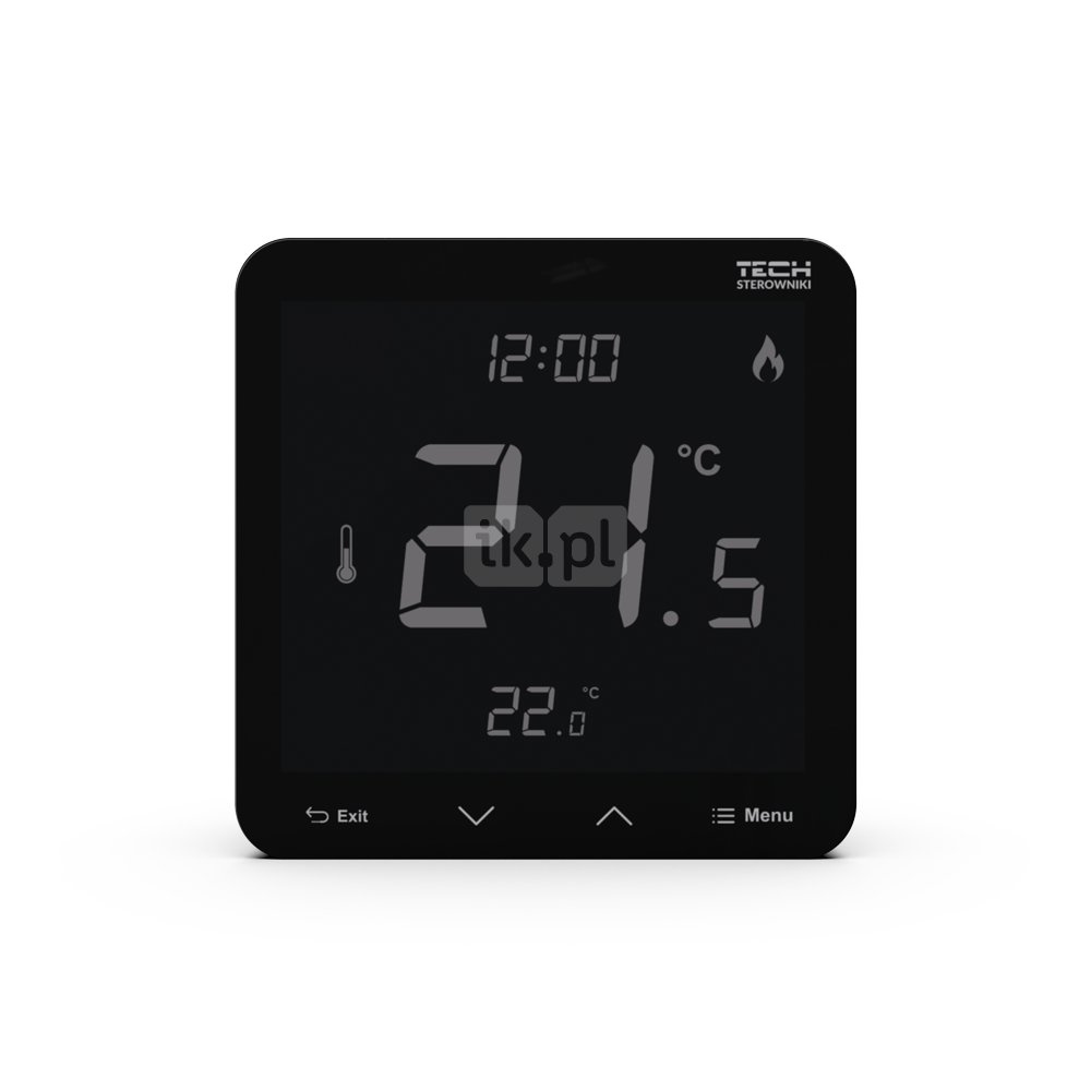 Przewodowy bateryjny natynkowy regulator pokojowy dwustanowy (panel przedni ze szkła) czarny, model T-3.1