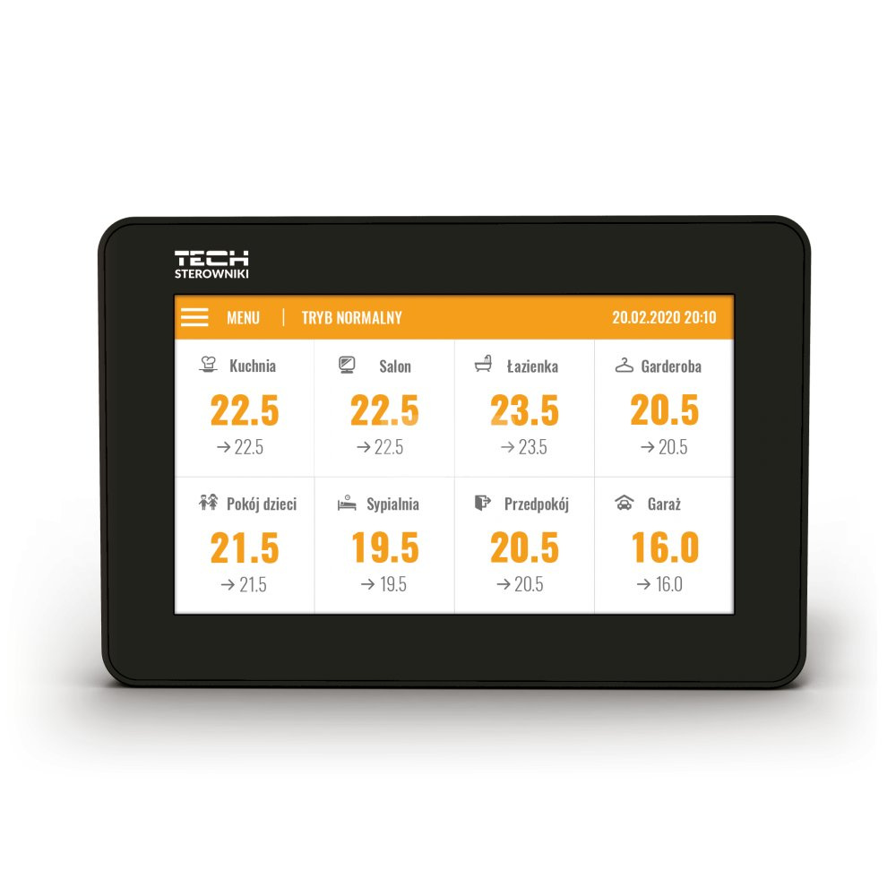 Zasada działania: Sterownik odpowiada za kontrolę i podgląd parametrów całego zestawu do sterowania ogrzewaniem podłogowym.