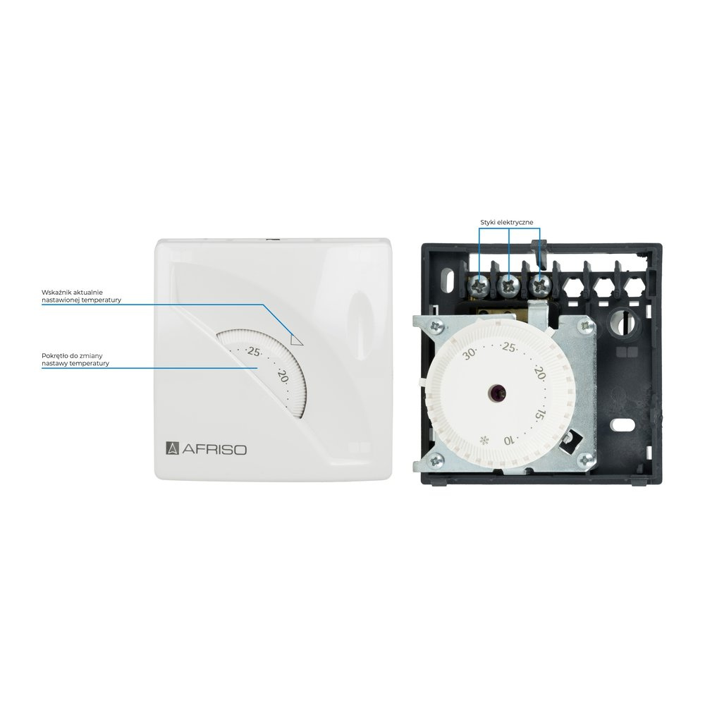 Przeznaczony do sterowania urządzeniami zewnętrznymi, na zasadzie włącz/wyłącz.Włącza lub wyłącza sterowane urządzenie w zależności od temperatury zmierzonej w pomieszczeniu i nastawionej na pokrętle.