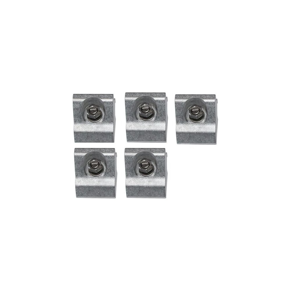 Aluplus zestaw łączników krzyżowych do łączenia szyn montażowych z szynami kolektora i barierami śniegowymi. 5 łączników ze śrubą młotkową, podkładką i nakrętką