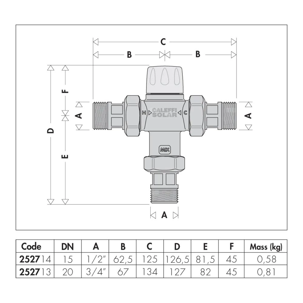 Regulowany termostatyczny antyoparzeniowy zawór mieszający z zaworami zwrotnymi i filtrami do instalacji solarnych Odporność ogniowa (DIN 4102): klasa B2 Wysoka wydajność cieplna urządzenia z funkcją ochrony antyoparzeniowej. Przyłącze: G 3/4" A (ISO 228-1) GZ, złączka. Maksymalne ciśnienie pracy: 10 bar. Zakres temperatury medium: 0–100 °C. Zakres regulacji temperatury: 35–55 °C. Kv: 1,7 m³/h. Materiał: stop mosiądzu odporny na odcynkowanie.