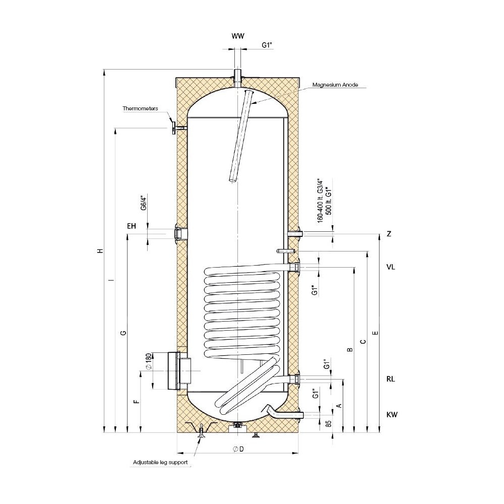 Zasobnik c.w.u. ACV TSA 1CO 300 pojemność 300 l, stal emaliowana