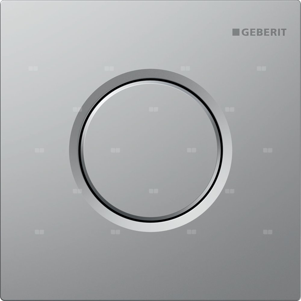 Przycisk uruchamiający z ryglem zabezpieczającym Ustawianie czasu spłukiwania za pomocą dysz powietrza (pneumatycznie) Niewielka siła nacisku uruchamia spłukiwanie Zwolnienie przycisku uruchamiającego uruchamia spłukiwanie Możliwość zredukowania ilości spłukiwanej wody poprzez zestaw montażowy regulatora przepływu do 0,5 l na spłukanie Poziom hałasu armatury Grupa II, zgodnie z DIN 4109 Do ręcznego uruchamiania spłukiwania pisuarów Do stelaży podtynkowych Geberit do pisuaru z uruchamianiem z przodu Do stelaży podtynkowych Geberit do pisuaru z uruchamianiem od góry Do montażu w skrzynkach montażowych do zaworów spłukujących Geberit do pisuaru (produkowanych od 2009 roku) Kolor główny: Chrom matowy Powierzchnia: Z powłoką easy-to-clean