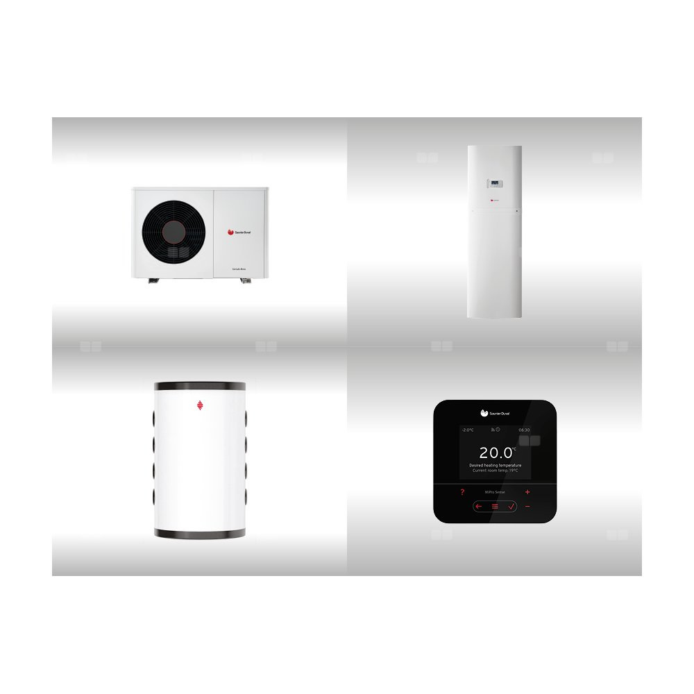 Pompa ciepła powietrzna powietrze-woda monoblok SAUNIER DUVAL GeniaAir HA 3-6 O 3.6 kW 230 V + Centrala grzewcza FEW 200/6 + Moduł komunikacji internetowej SR 940f + Zasobnik buforowy WR RW 50 + Regulator SRC 720