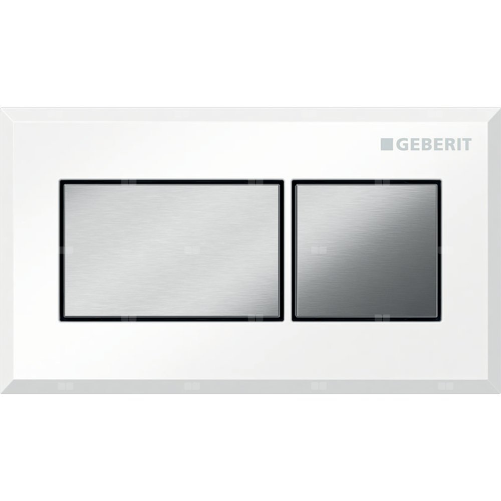Przycisk do zdalnego uruchamiania spłukiwania Geberit, kształt geometryczny, pneumatyczny: Obudowa: biała / wysoki połysk, Przyciski: chromowane, szczotkowane