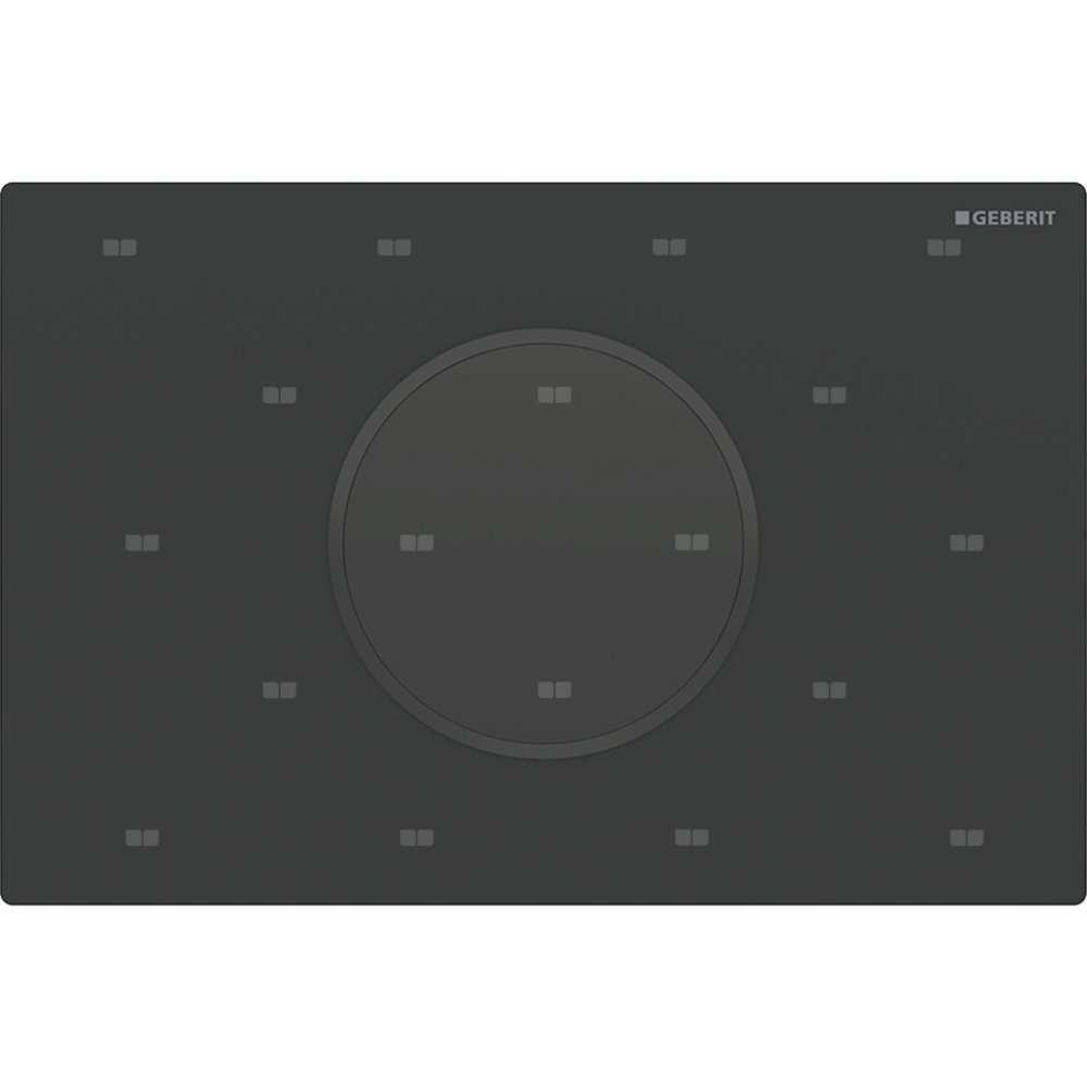Przycisk uruchamiający Geberit Sigma10 do systemu spłukiwania WC z elektronicznym uruchamianiem spłukiwania, okrągły, z zabezpieczeniem: Płyta: czarny mat, z powłoką easy-to-clean, Pierścień ozdobny: czarny