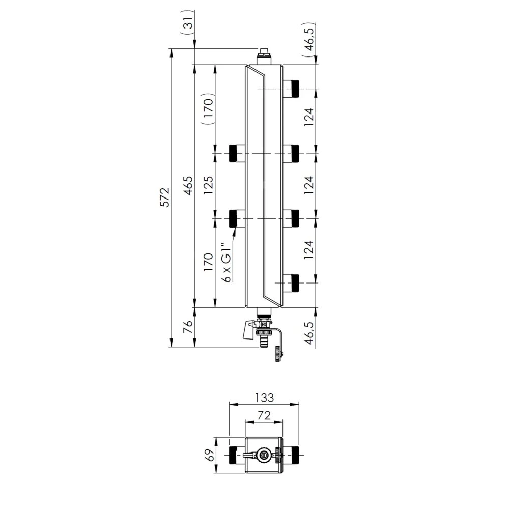 Odpowietrznik ręczny pozwala usunąć powietrze wytrącone w rozdzielaczu.
