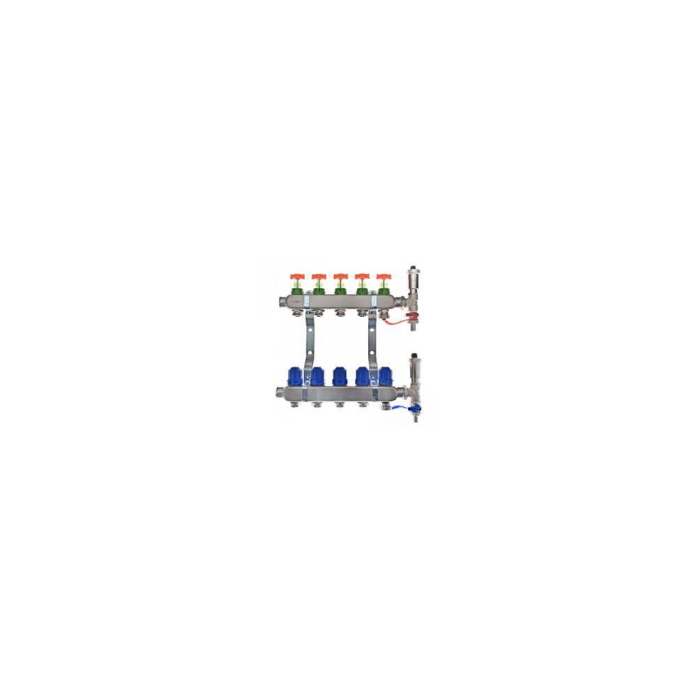 Rozdzielacz do ogrzewania podłogowego QIK Optimo STANDARD III PC - RNZT-1-50 2,5l 4-obieg. inox GW 1'' x GZ 3/4'' + przepływomierz