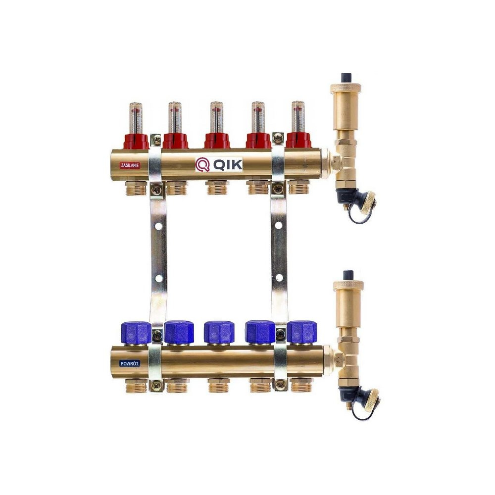 Rozdzielacz do ogrzewania podłogowego QIK STANDARD II TN 14-obieg. mosiądz GW 1'' x GZ 3/4'' + przepływomierz