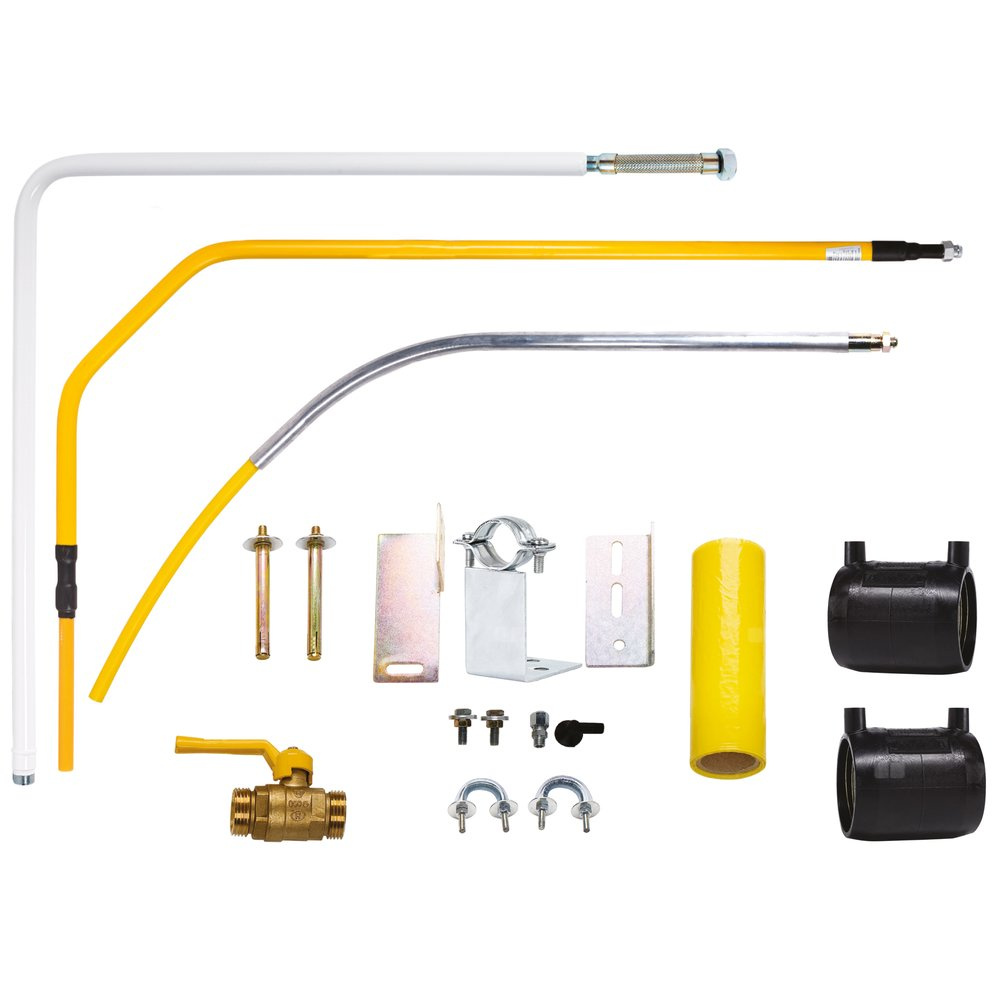 Zestaw przyłączeniowy umożliwiający kompleksowe przyłączenie zbiornika naziemnego z budynkiem.