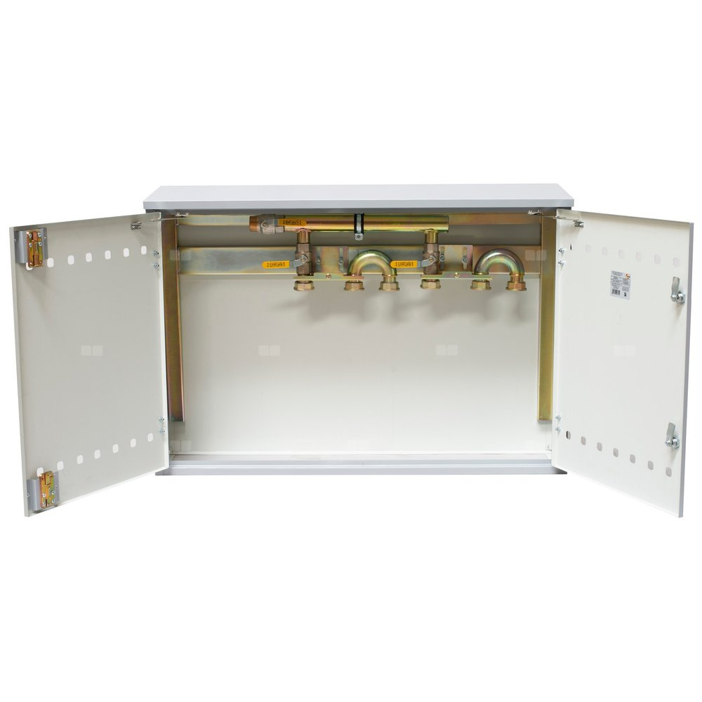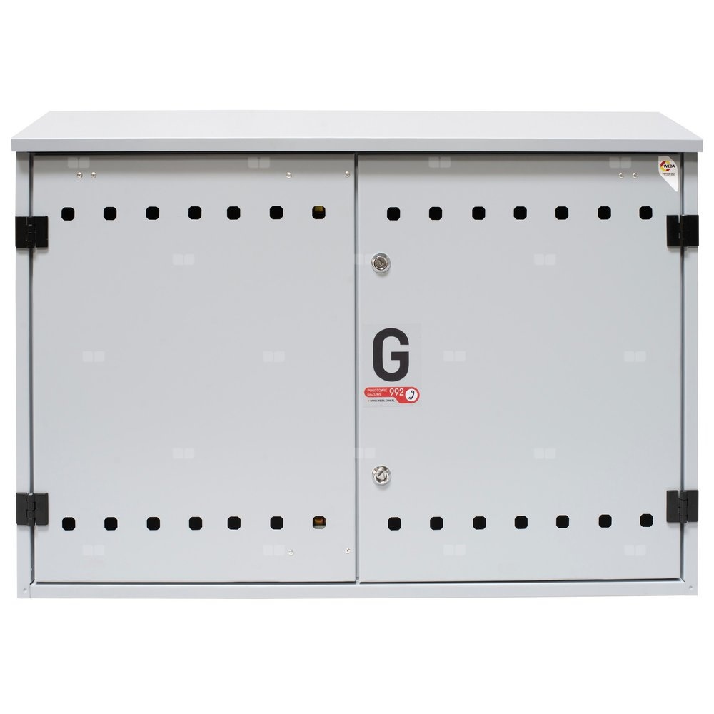 Punkt redukcyjno-pomiarowy na 2 gazomierze G4/G6, w poziomie, w skrzynce metalowej 1050x700x250 -popielaty