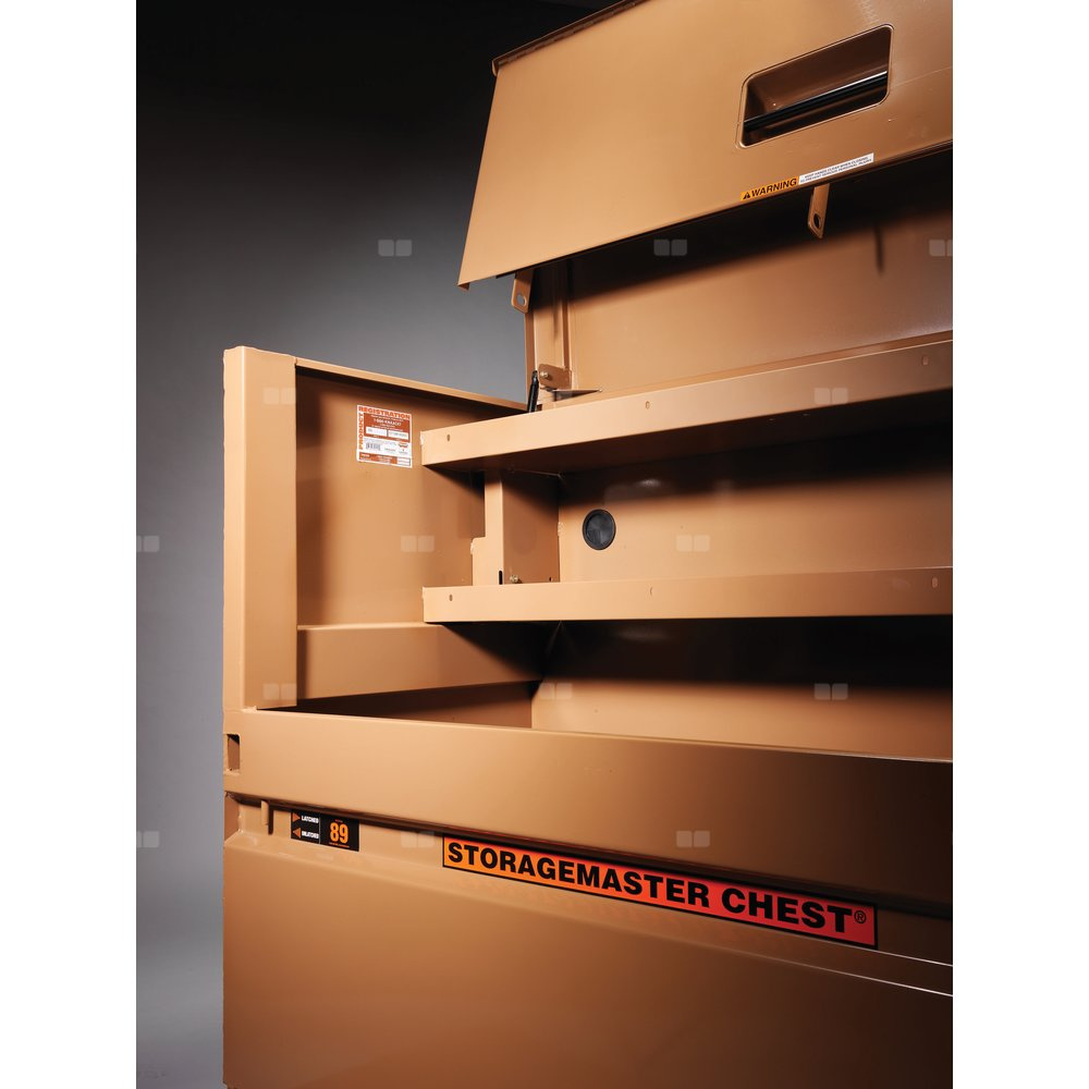Nic nie może się równać ze skrzyniami STORAGEMASTER pod względem bezpiecznego przechowywania w miejscu pracy, łatwości korzystania, wytrzymałości i inteligentnych rozwiązań. Weź te cechy pod uwagę wybierając skrzynię typu piano box o najwyższej wytrzymałości. Zamknięcie WATCHMAN® IV z trzema punktami blokowania i wpuszczanym mechanizmem zamykania zapewnia wyjątkową odporność na próby włamania. Jednorazowy montaż zamka oznacza brak przestojów na wymianę zamków.Przepust Power Pass™ ułatwia wyprowadzenie przewodu zasilania w sposób odporny na działanie warunków atmosferycznych.Wzmocniona obudowa zamka zapewnia wyjątkową odporność.Wysokowytrzymałe zawiasy są zakute i przyspawane, uniemożliwiając próby podważenia.Wpuszczane klamki ułatwiają pochwyt również w rękawicach.Warstwa ochronna lakieru proszkowego zapewnia ochronę przed warunkami atmosferycznymi i długą trwałość. / Podwójne sprężyny gazowe umożliwiają łatwe otwieranie jedną ręką. / Osłony sprężyn gazowych zabezpieczają je przed uszkodzeniem. / Płozy stalowe przystosowane do mocowania kół samonastawnych pozwalają uzyskać dodatkową mobilność. / Wysokowytrzymała konstrukcja ze stali 1,52 mm z pełnymi spawami łukowymi.