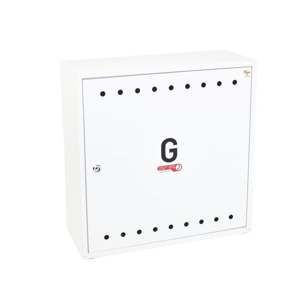 Skrzynka gazowa 600x600x250 wolnostojąca, stalowa, ze skośnym daszkiem, RAL 9003 biała