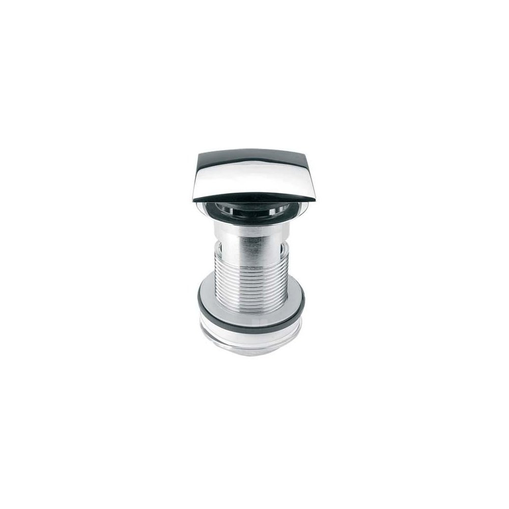 Spust umywalkowy,kwadratowy z serii „GLASGOW” 1.1/4″x90x60mm wykonany z mosiądzu, z korkiem dekoracynym i mechanizmem otwierającym i zamykającym odpływ „klik-klak”, z otworem przelewowym.