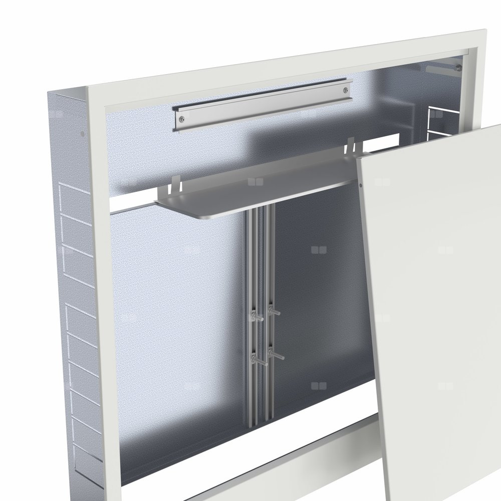 Szafki podtynkowe do rozdzielaczy ogrzewania podłogowego i grzejnikowego. Zastosowana ochrona antykorozyjna: płukanie chemiczne (odtłuszczanie), powłoka cyrkonowa, malowanie proszkowe farbą epoksydowo-poliestrową. Korpus szafki cynkowany wykonany z jednego arkusza blachy - łączony bez spawania. Ramka i drzwi szafki w całości malowane proszkowo. Łatwy, czysty montaż rozdzielacza. Ułatwiony szeroki dostęp do rozdzielacza podczas montażu. Mniejsze prawdopodobieństwo uszkodzenia ramki i drzwi szafki. Zamek na monetę. Szyny montażowe cynkowane z kompletem śrub i nakrętek ułatwiających montaż rozdzielacza.