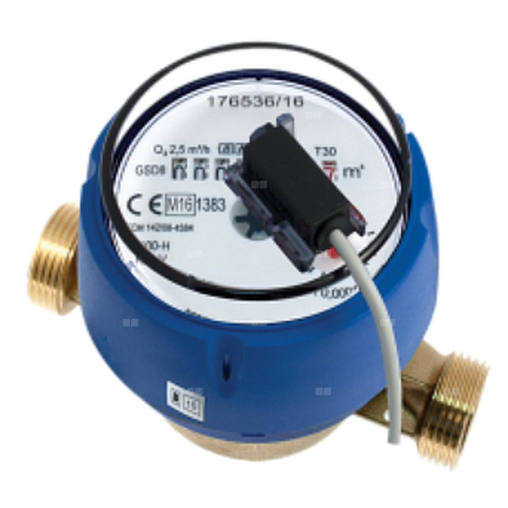 Wodomierz jednostrumieniowy suchobieżny z nadajnikiem impulsów REED SIMPLE, typu GSD8-R DN 15 Q3=1,6 m3/h R100/50, Tmax: 90st.C, L=110 mm