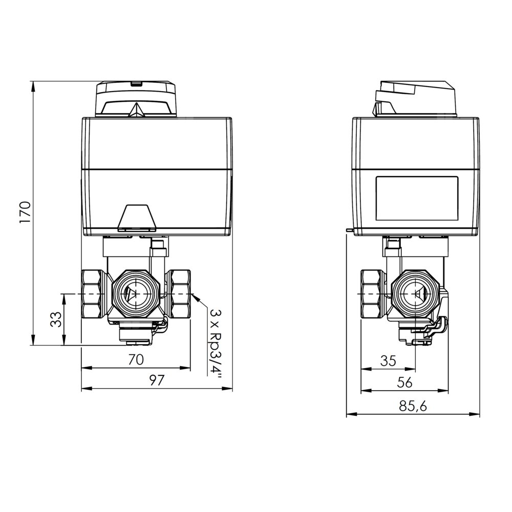 Zawór obrotowy trójdrogowy AFRISO ARV 382 Vario ProClick, mieszający, Siłownik elektryczny ARM 343, DN 20