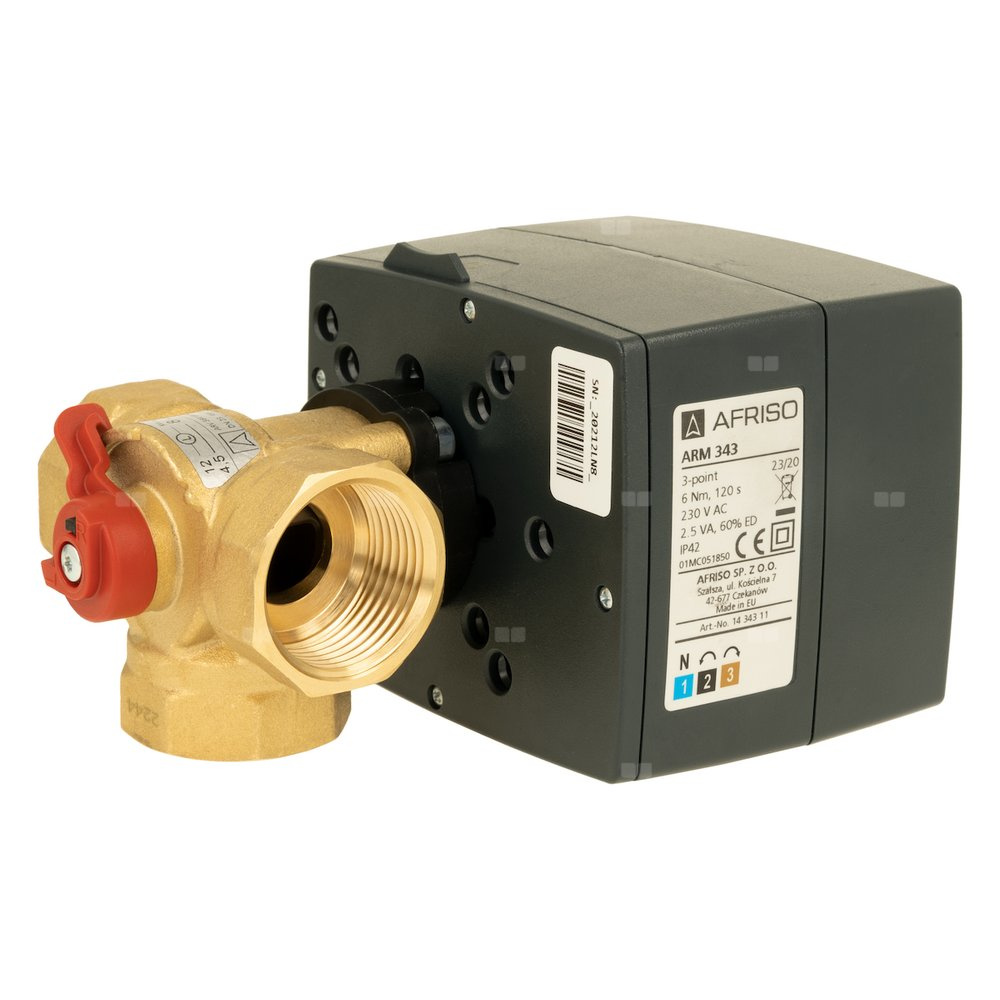 Zawór obrotowy trójdrogowy AFRISO ARV 384 Vario ProClick, mieszający, Siłownik elektryczny ARM 343, DN 25