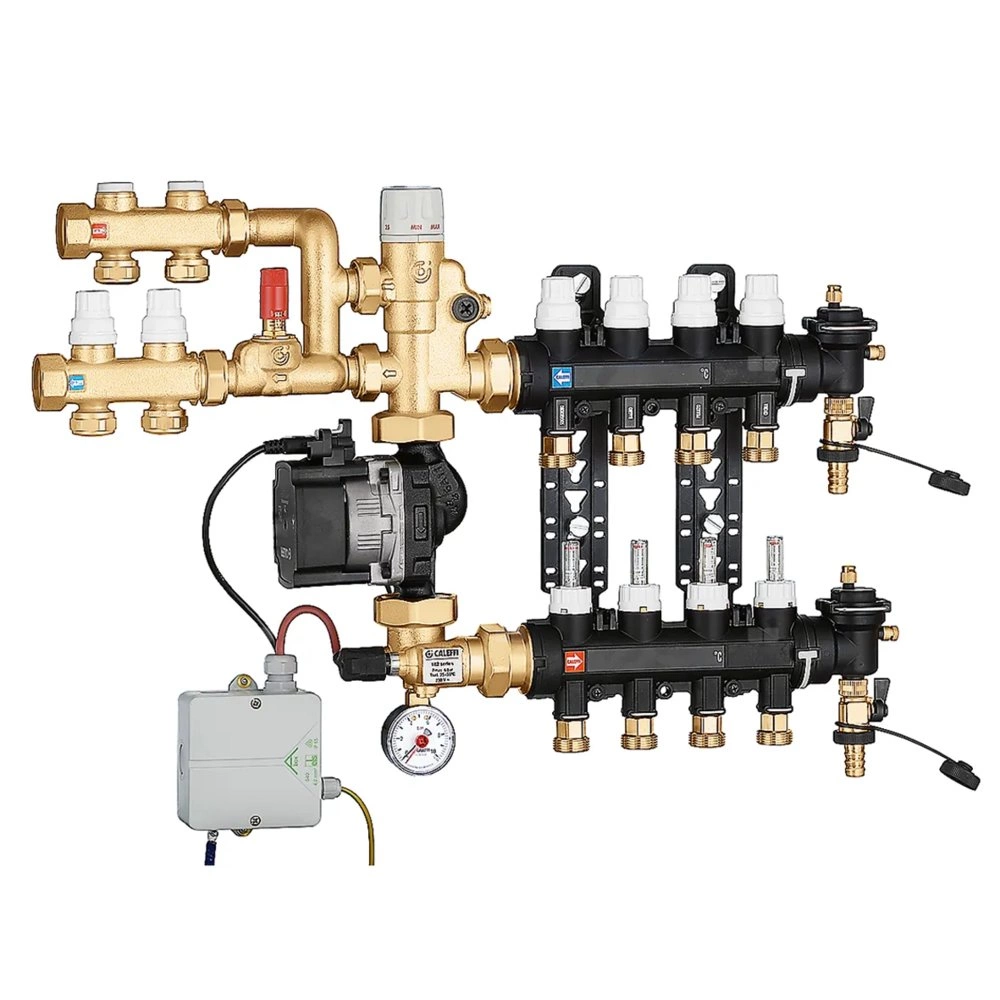 Zespół regulacyjny - regulacja stałotemperaturowa. 12 wyjść. Dodatkowy rozdzielacz obiegu pierwotnego z dwoma wyjściami.