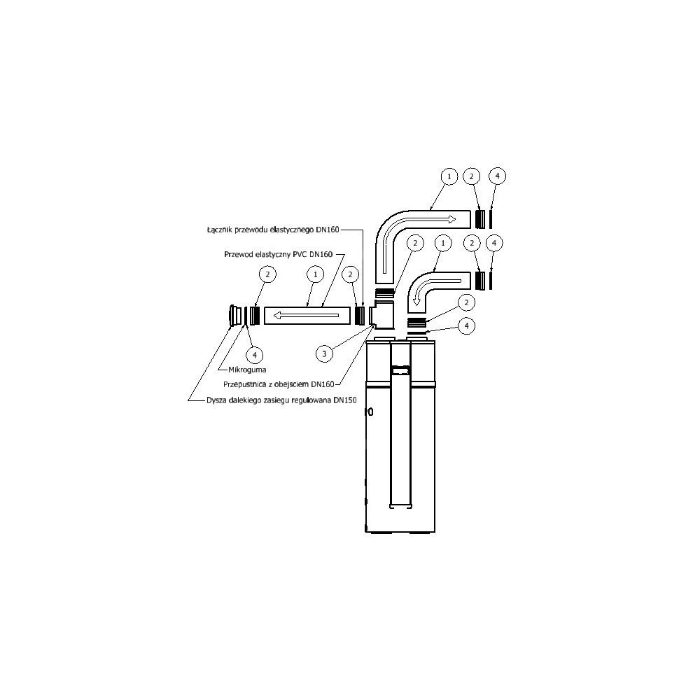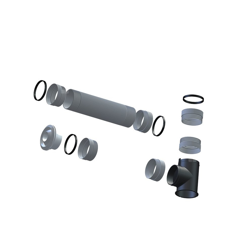 Zestaw wentylacyjny przystosowany jest do wykonania instalacji wentylacyjnej pompy ciepła. Powietrze zasysane jest z zewnątrz, natomiast za pomocą przepustnicy (z ręczną nastawą położenia) możemy tłoczyć je opcjonalnie na zewnątrz budynku lub do pomieszczenia. Jeżeli potrzebne jest zastosowanie dwóch przepustnic (po stronia ssania i tłoczenia powietrza), należy wybrać zestaw wentylacyjny rozszerzony.