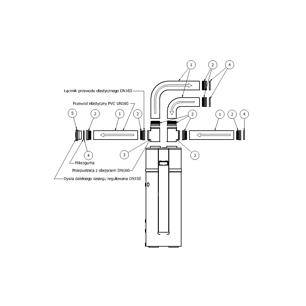 Zestaw wentylacyjny rozszerzony przystosowany jest do wykonania instalacji wentylacyjnej pompy ciepła. Powietrze zasysane jest z zewnątrz lub z pomieszczenia (wybór dzięki przepustnicy z ręczną nastawą położenia. Następnie możemy tłoczyć je opcjonalnie na zewnątrz budynku lub do pomieszczenia przez drugą przepustnicę znajdującą się w zakresie dostawy zestawu rozszerzonego.